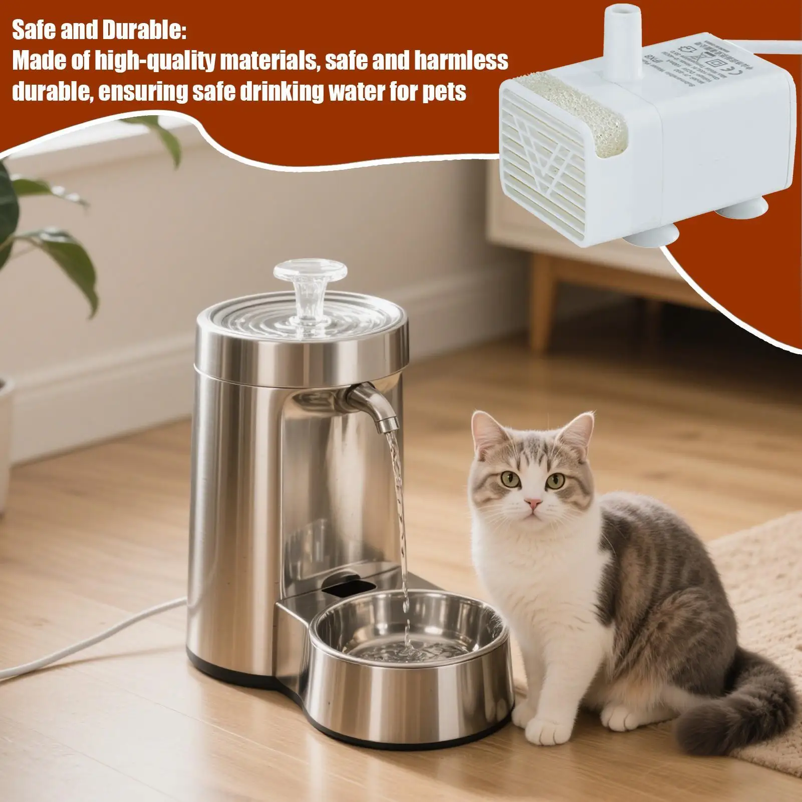 2.Long Lasting: Designed with excellent materials, this pump ensures clean drinking water for cats and resists wear effectively, ensuring safety during continuous use
